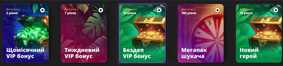 - Бездепозитний бонус – бонус, який гравці отримують за кожні 10 рівнів